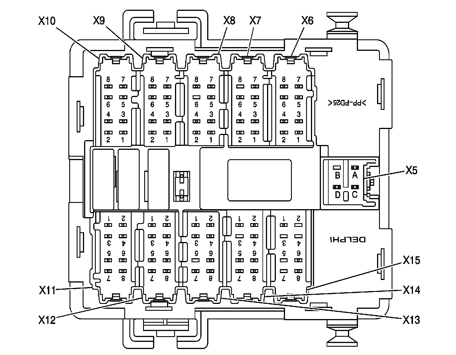 Junction Block - Right I/P X1 (Wire Entry) (Pin 2A1 To 5E):