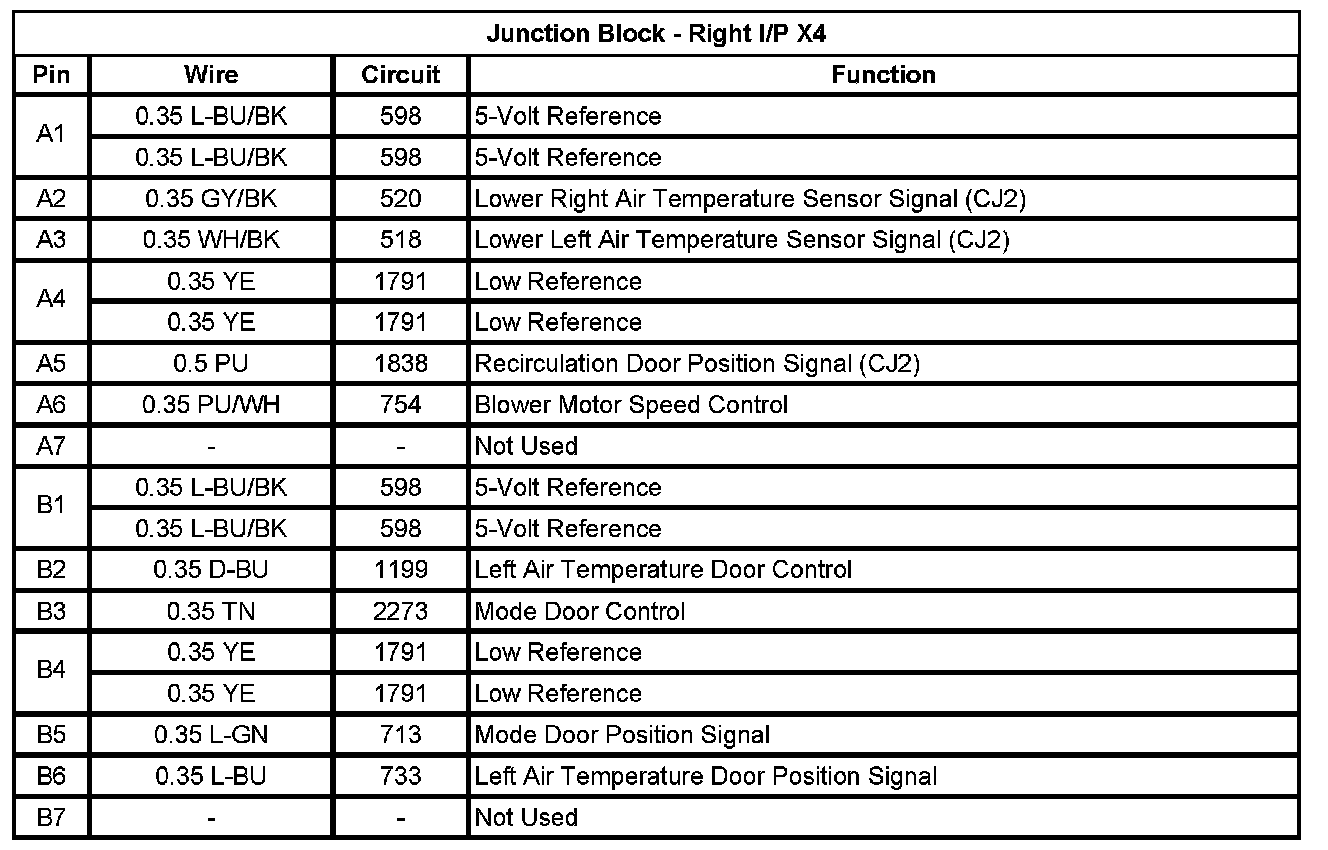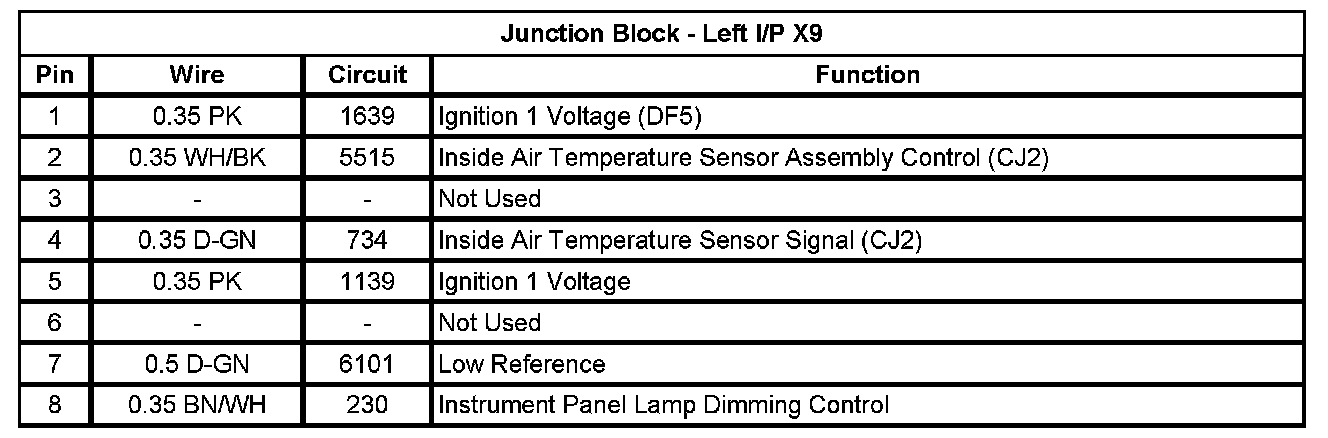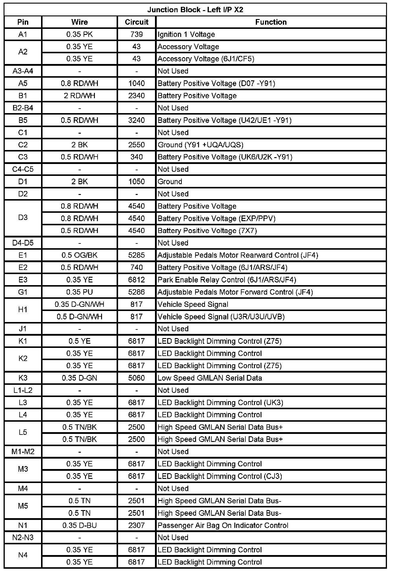 Junction Block - Left I/P X1 (Pin A1 To L5):