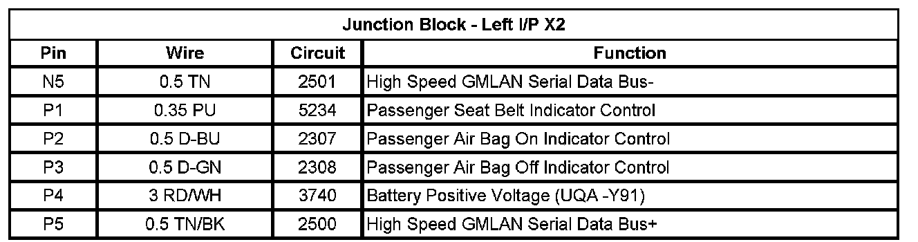 Junction Block - Left I/P X2 (Pin N5 To P5):