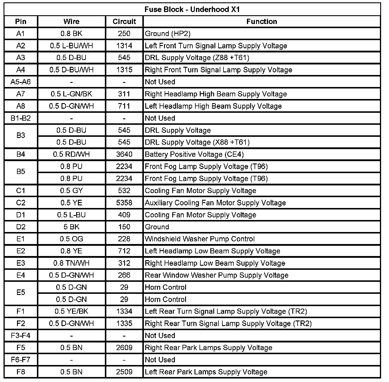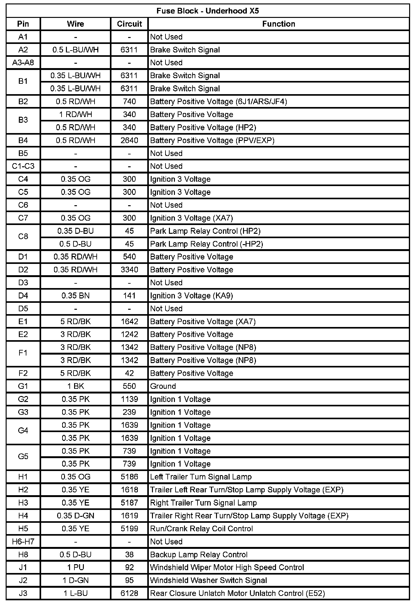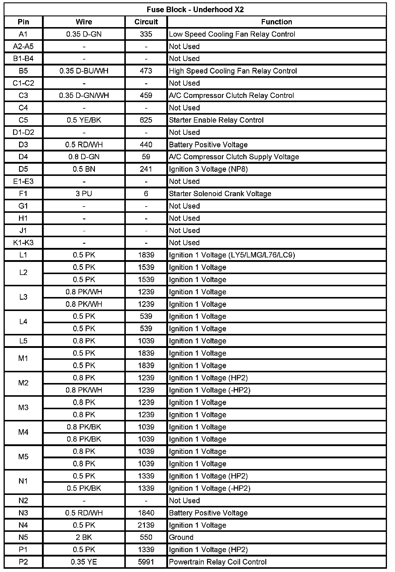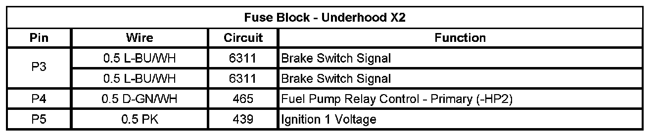 Fuse Block - Underhood X2 (Pin P3 To P5):