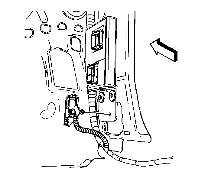 2. Remove the right front hinge pillar trim panel. Refer to Body Hinge Pillar Trim Panel Replacement - Right Side (Service and Repair) .