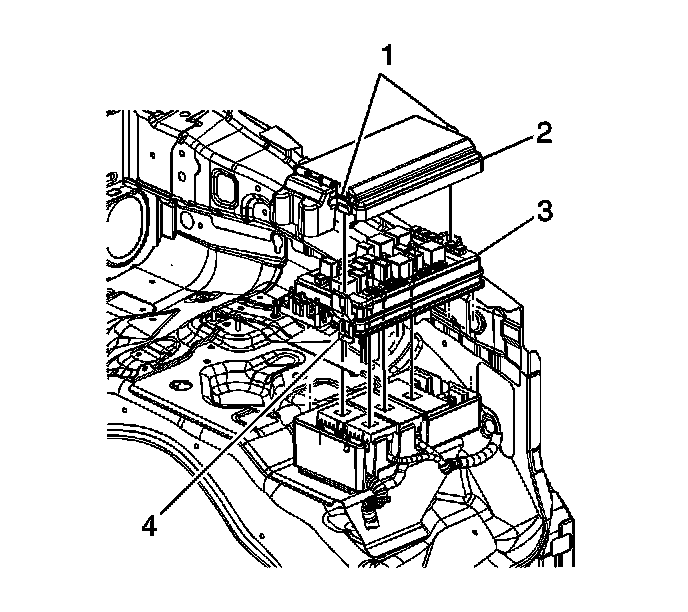 3. Remove the fuse relay center bolts (3) and remove the fuse relay center from the junction block bracket.