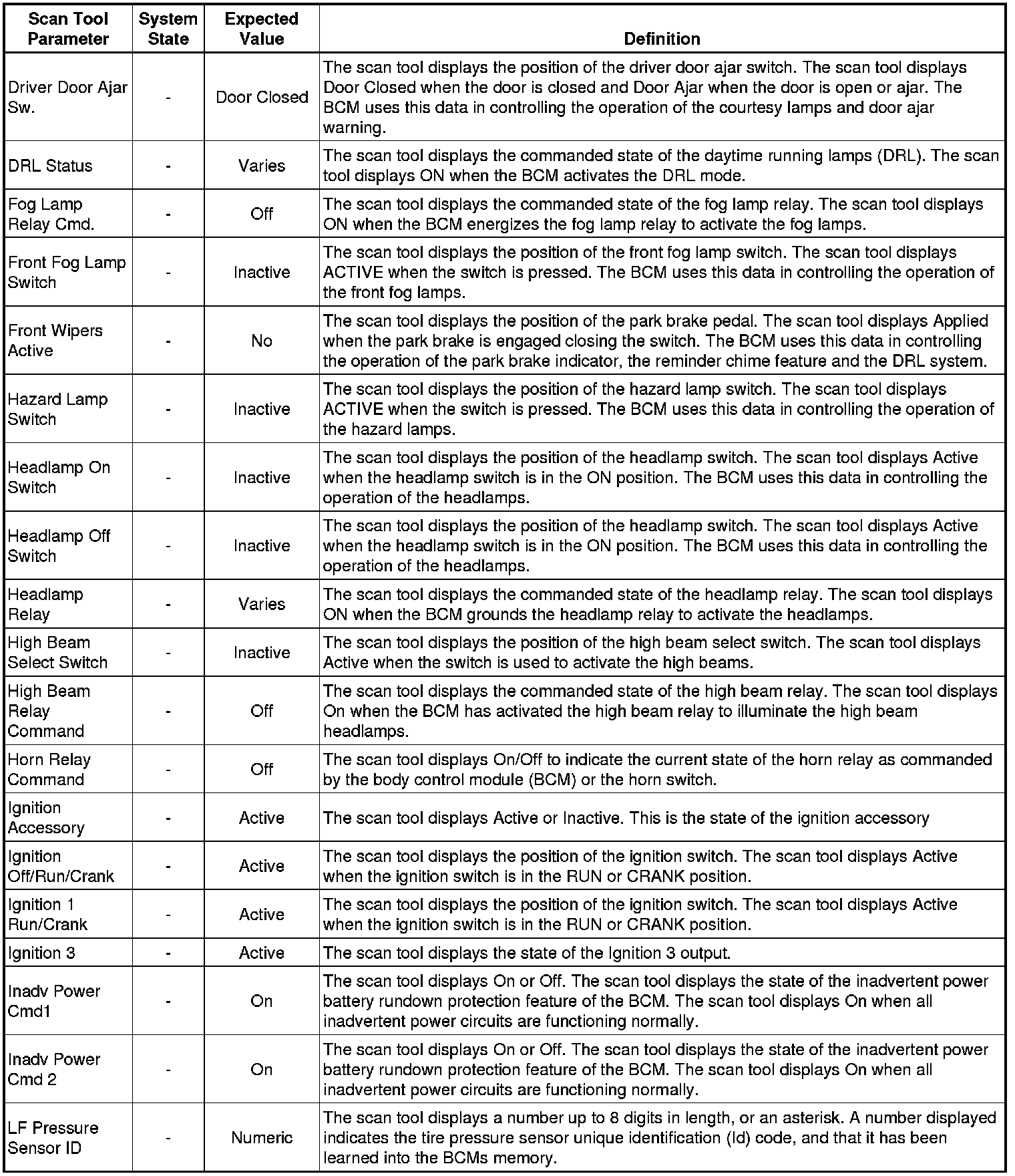 Body Control Module Scan Tool Information