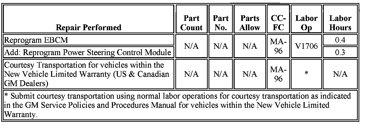THE LABOR TIME IN THIS BULLETIN HAS BEEN REVISED. SOME VEHICLES WILL REQUIRE POWER STEERING CONTROL MODULE PROGRAMMING IN ADDITION TO THE EBCM PROGRAMMING. TIS2WEB WILL INSTRUCT THE TECHNICIAN IF THIS ADDITIONAL PROGRAMMING IS REQUIRED. PLEASE DISCARD ALL COPIES OF BULLETIN 07224, ISSUED SEPTEMBER 2007.