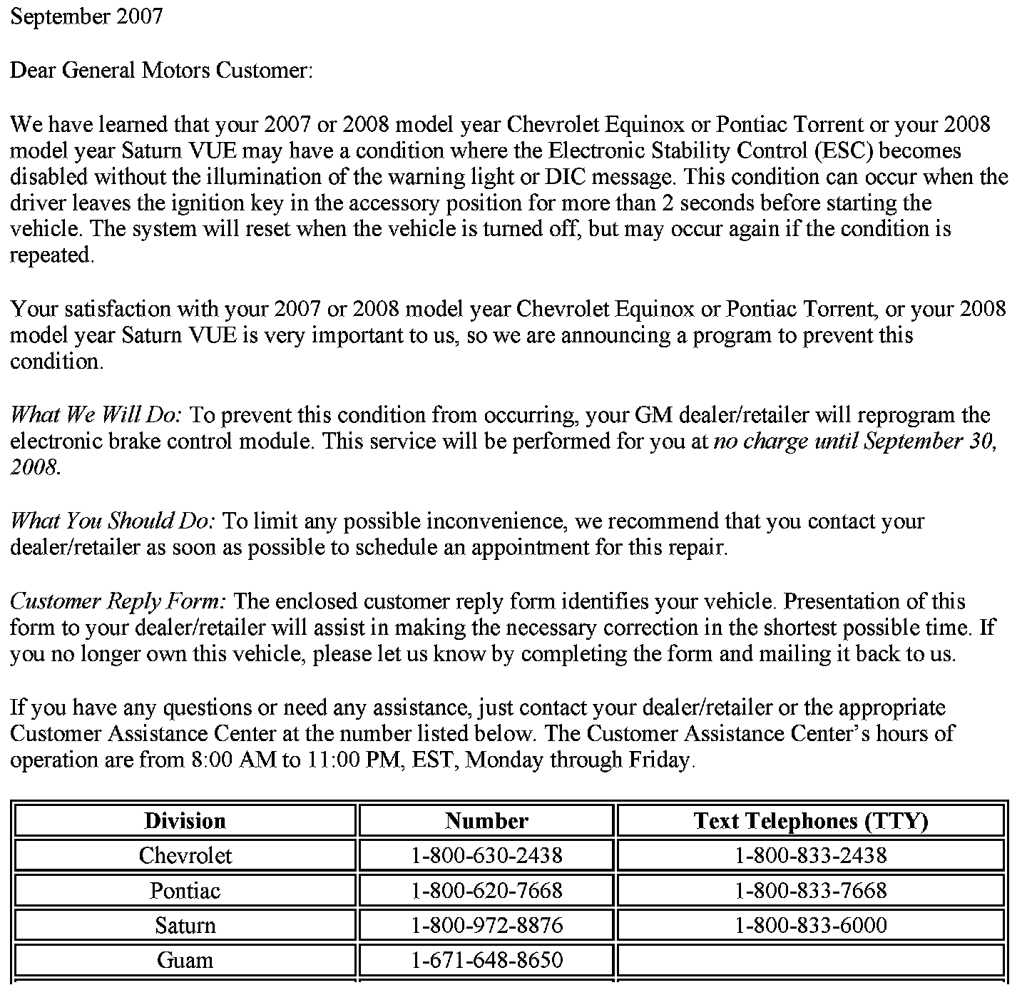Campaign - ESC/Steering Module Reprogramming