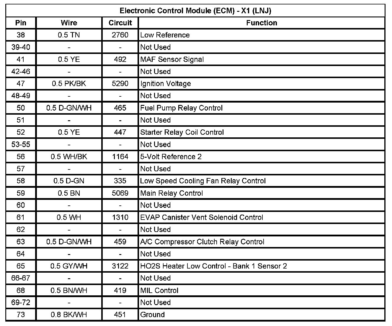 Electronic Control Module (ECM) - X1 (LNJ) (Pin 38 To 73):