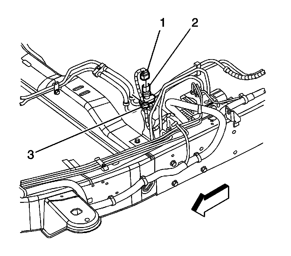 6. Install the chassis wiring harness clip (3) to the fuel pipe.