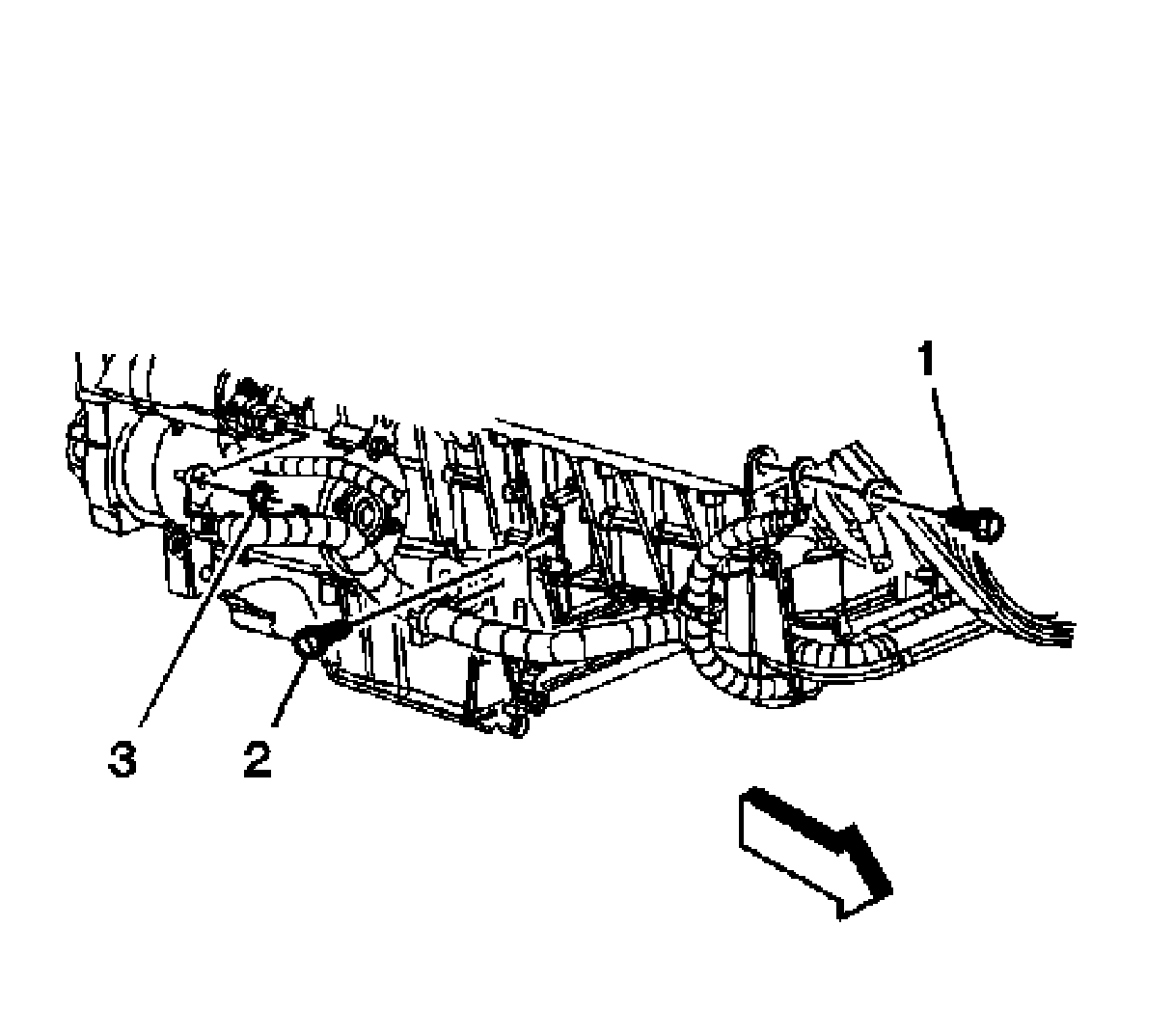 38. Remove the left front and right rear intake manifold lower bolts.