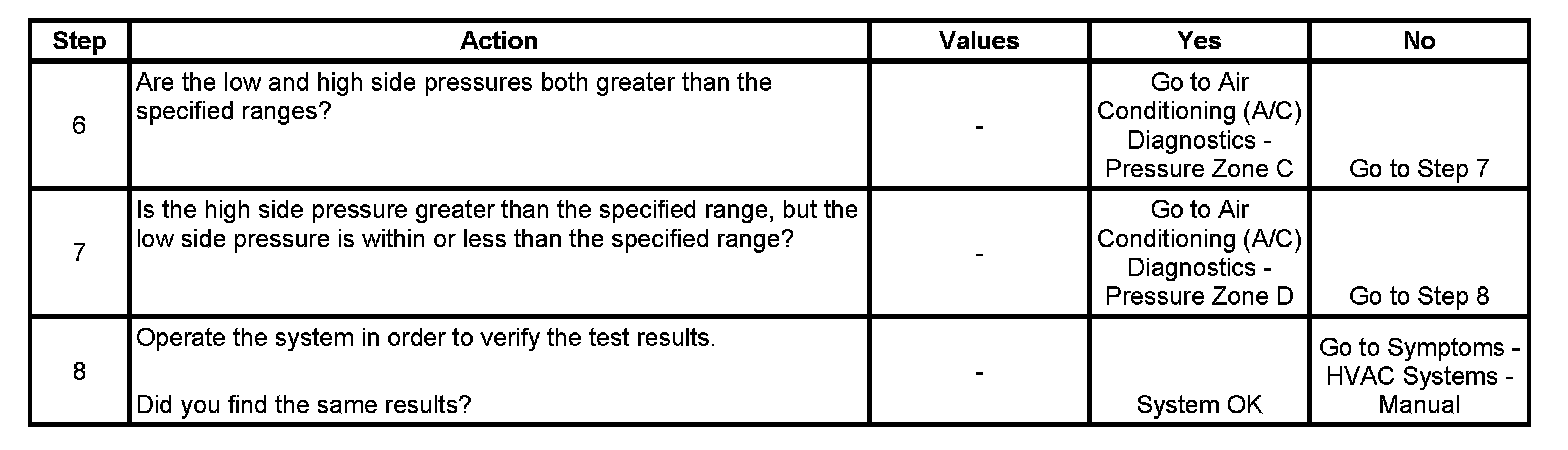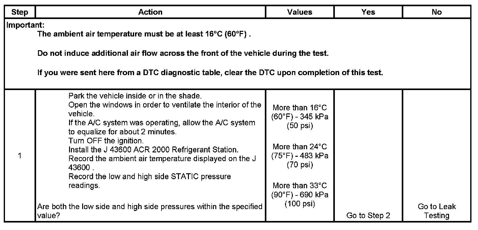 1. This step determines if the A/C system has at least the minimum refrigerant charge required to operate the system without damage.