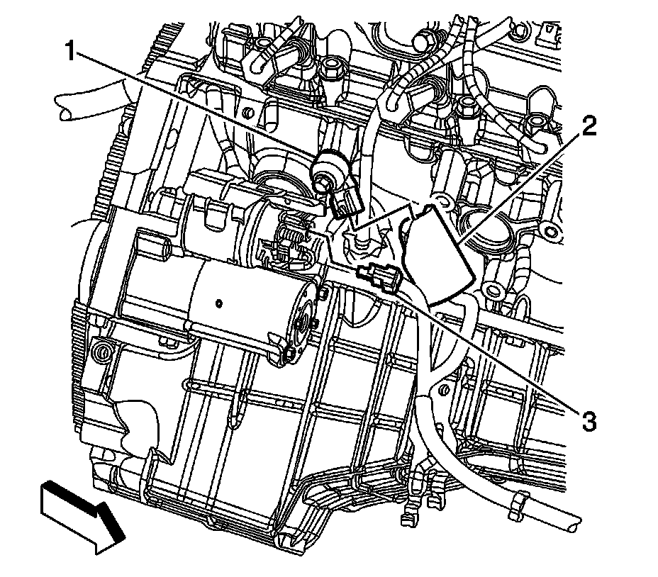 3. Disconnect the engine wiring harness electrical connector from the knock sensor (1).