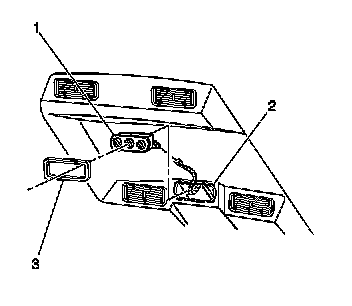 1. Remove the HVAC control assembly bezel (3) from the headliner (2).