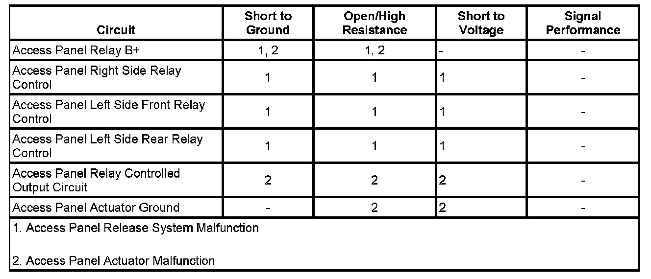 • If the access panel actuators fails to activate, refer to Keyless Entry System Inoperative. Keyless Entry System Inoperative