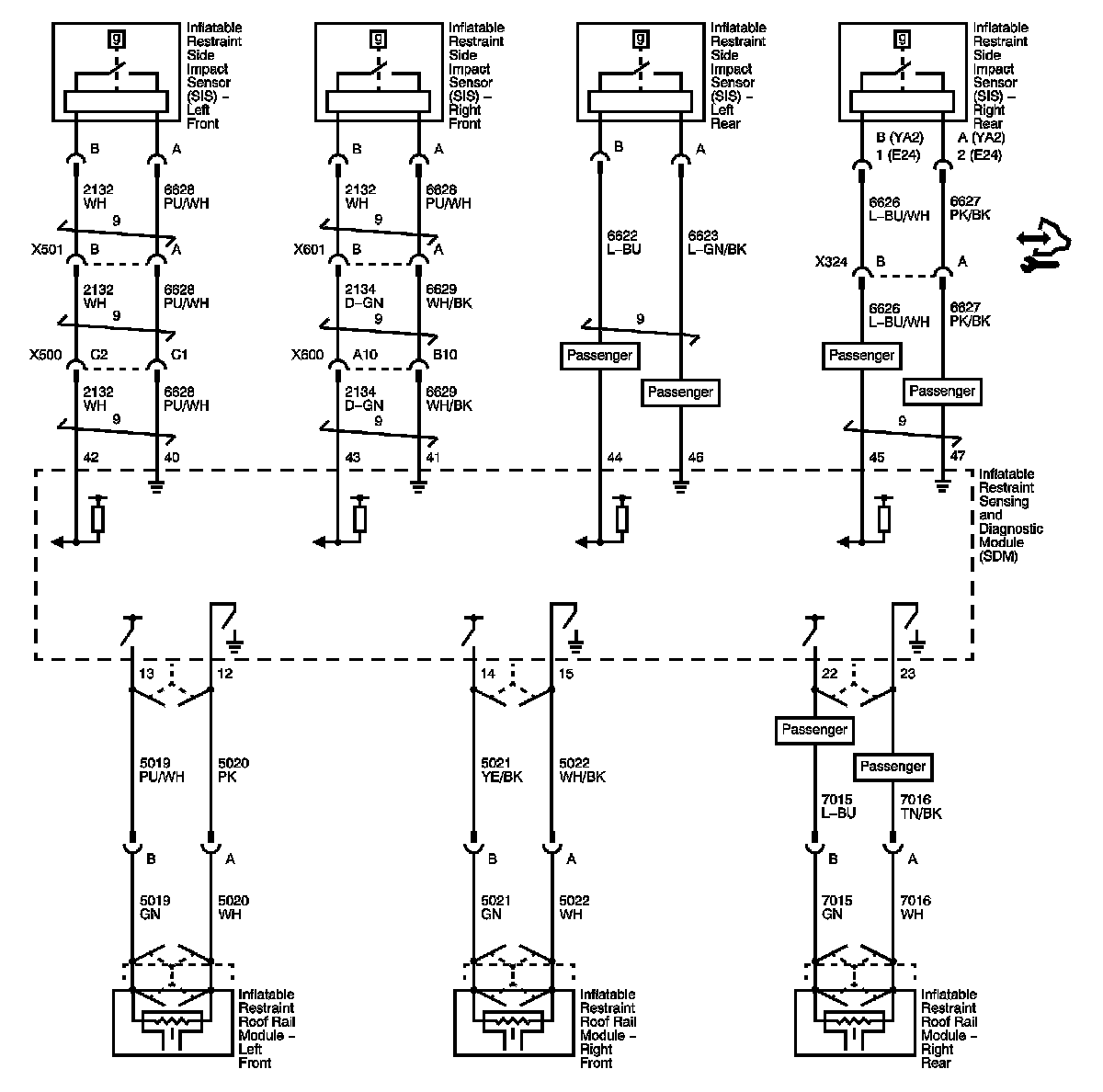 Module Power, Ground, Serial Data, Vehicle Rollover Sensor (ASF) and Disable Switch