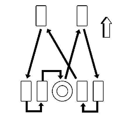 8. For vehicles with dual rear wheels, including the spare tire, rotate the tires as shown.
