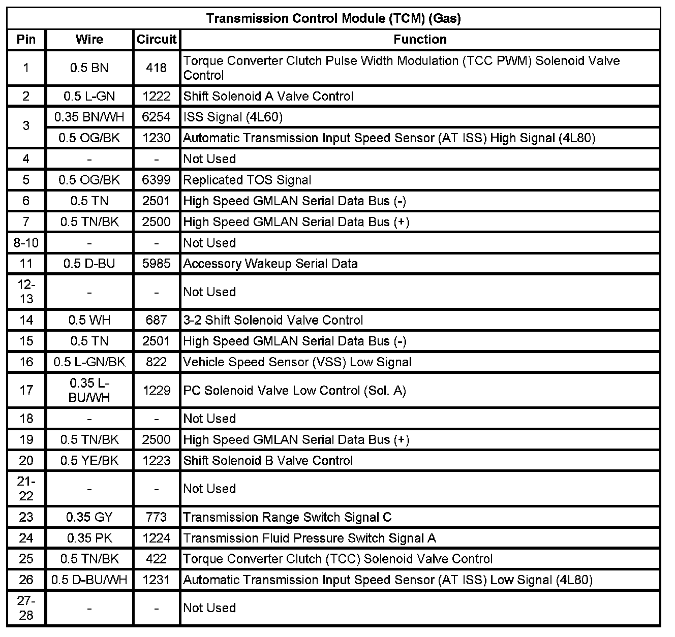 Transmission Control Module (TCM) (Gas) (Pin 1 To 28):
