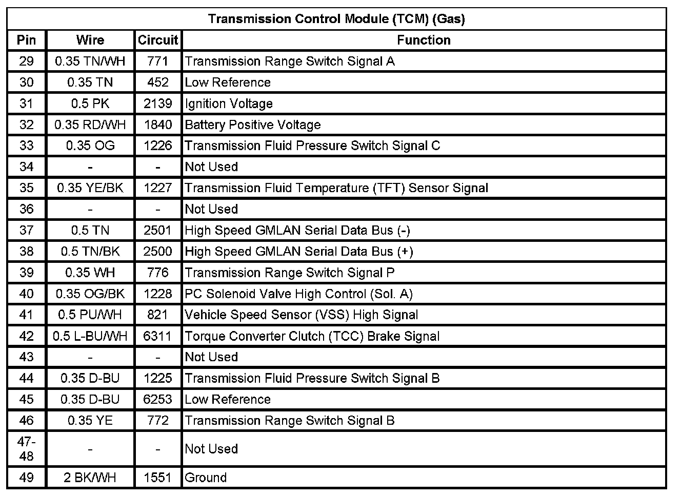 Transmission Control Module (TCM) (Gas) (Pin 29 To 49):