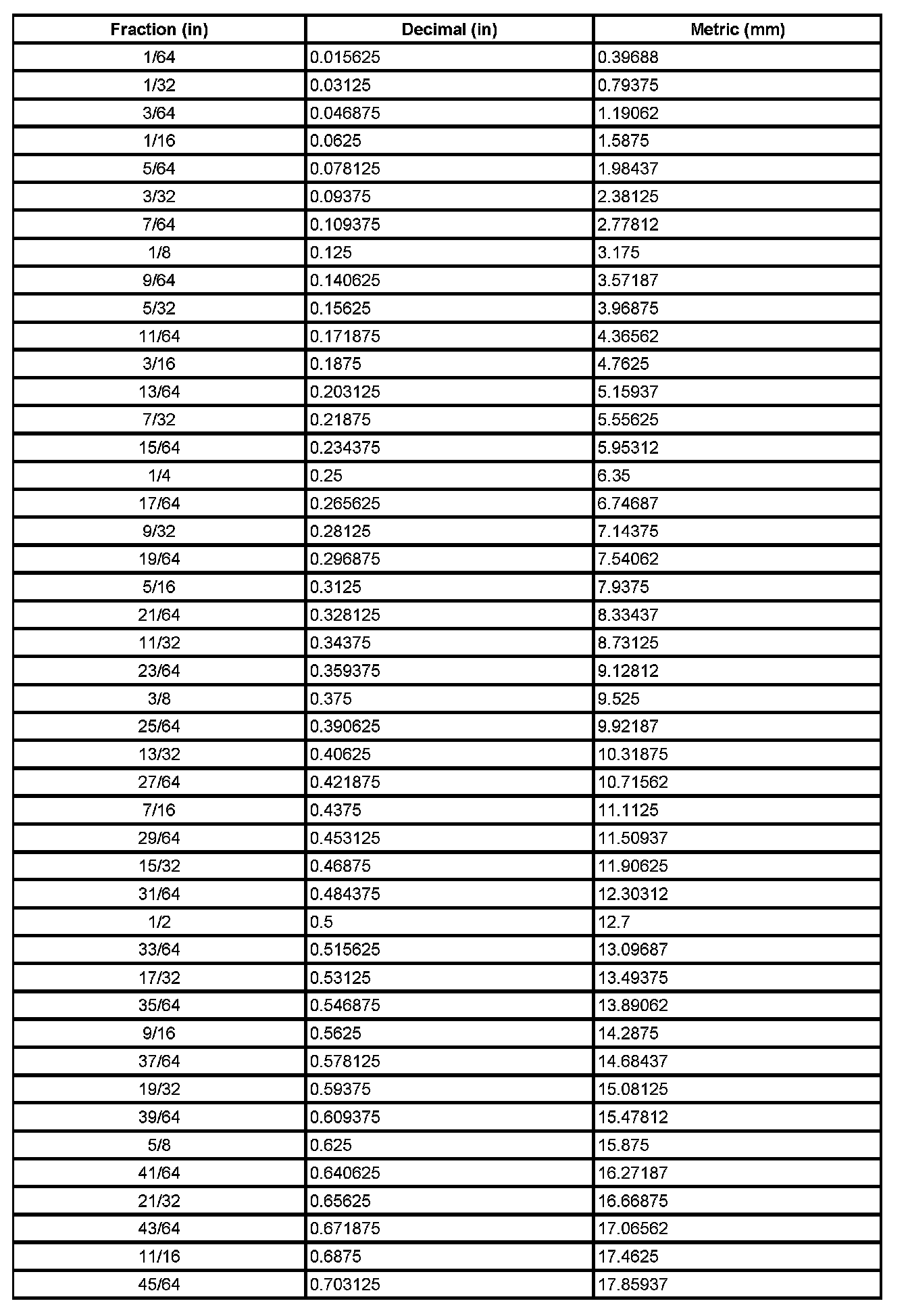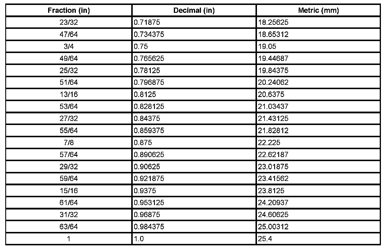 Decimal and Metric Equivalents