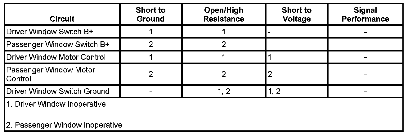 12. If all circuits test normal, test or replace the front passenger window motor.
