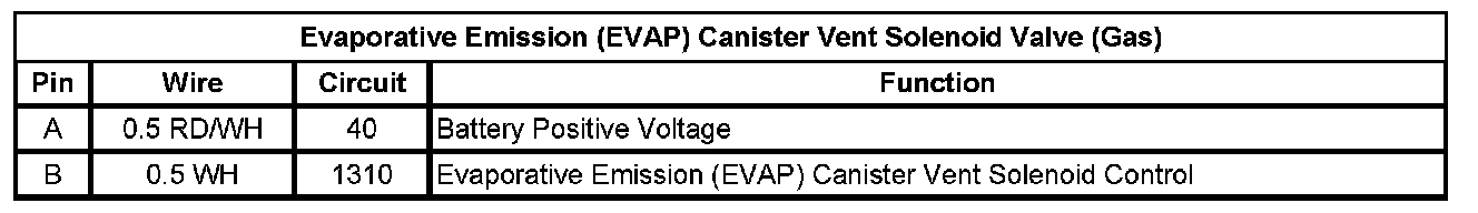 Evaporative Emission (EVAP) Canister Vent Solenoid Valve (Gas)