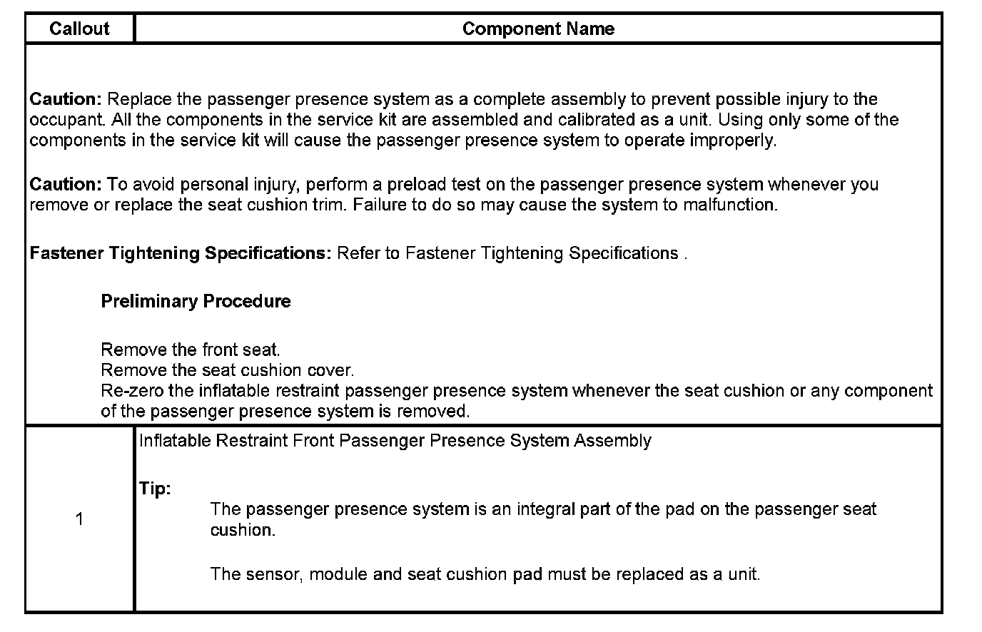 Inflatable Restraint Passenger Presence System Replacement - Front