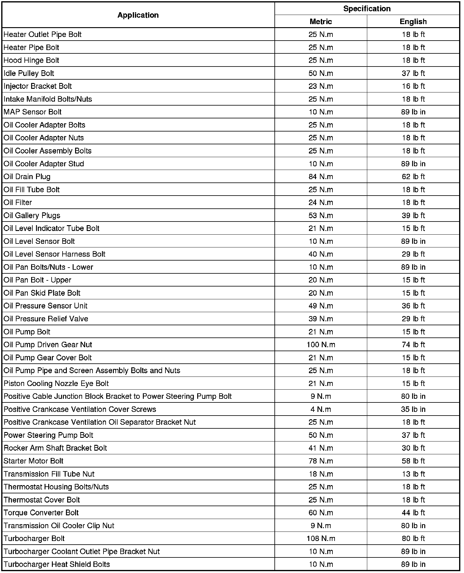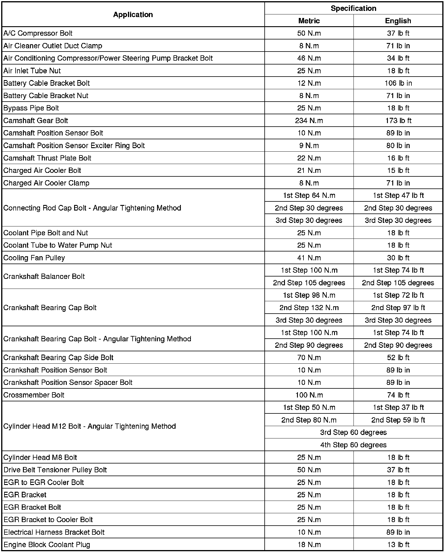 Fastener Tightening Specifications