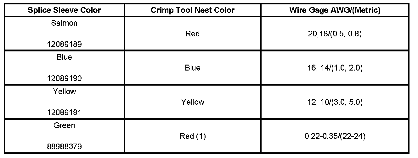 5. Select the proper duraseal splice sleeve (2) and the required crimp nest tool. Refer to the Crimp and Seal Splice Table.