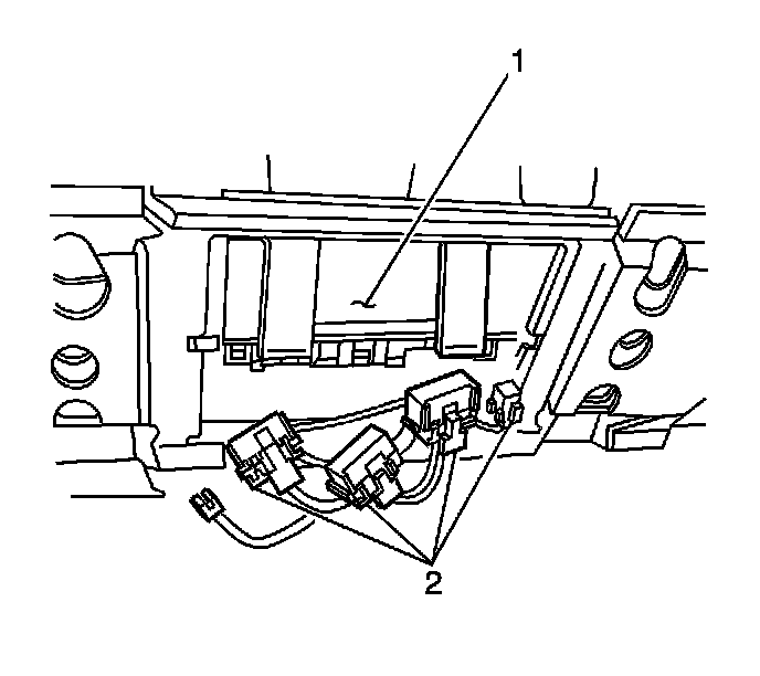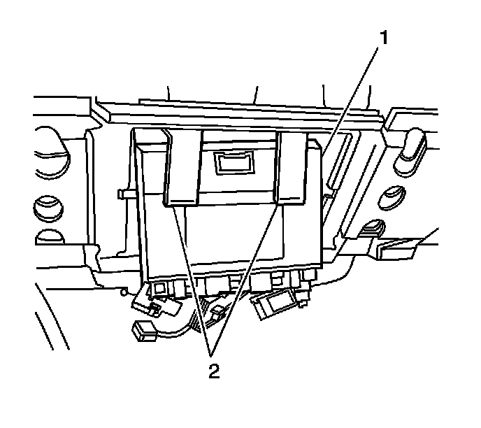 3. Release the tabs (2) retaining the BCM (1) to the bracket.