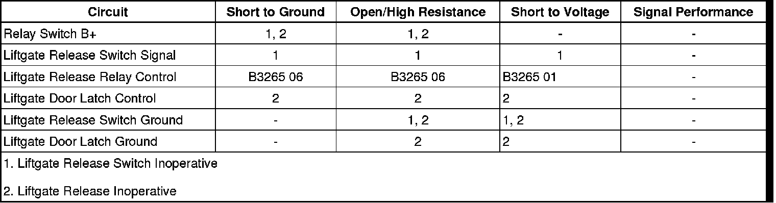 5. If all circuits test normal, test or replace the liftgate release switch.