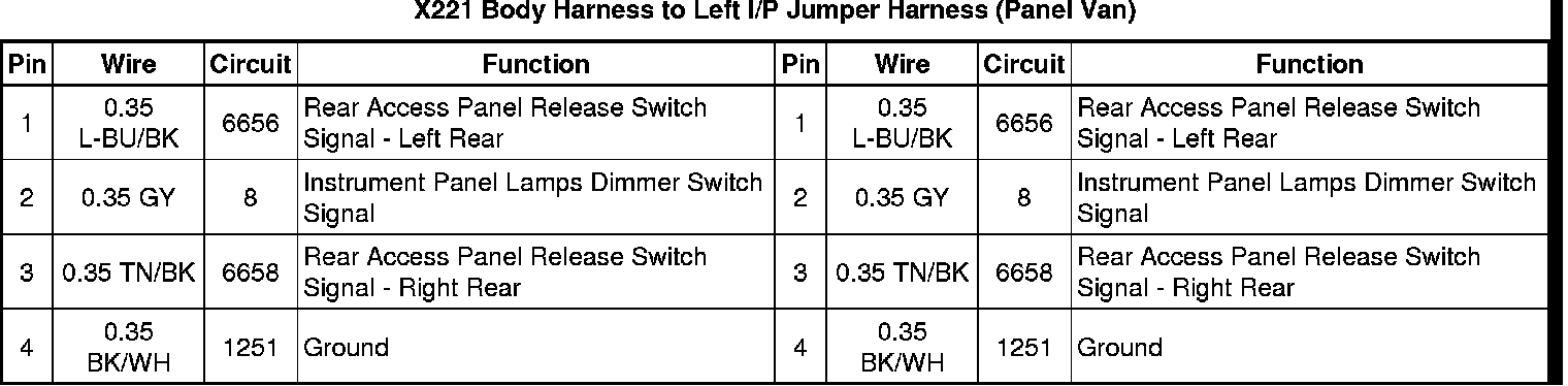 X221 Body Harness to Left I/P Jumper Harness (Panel Van)