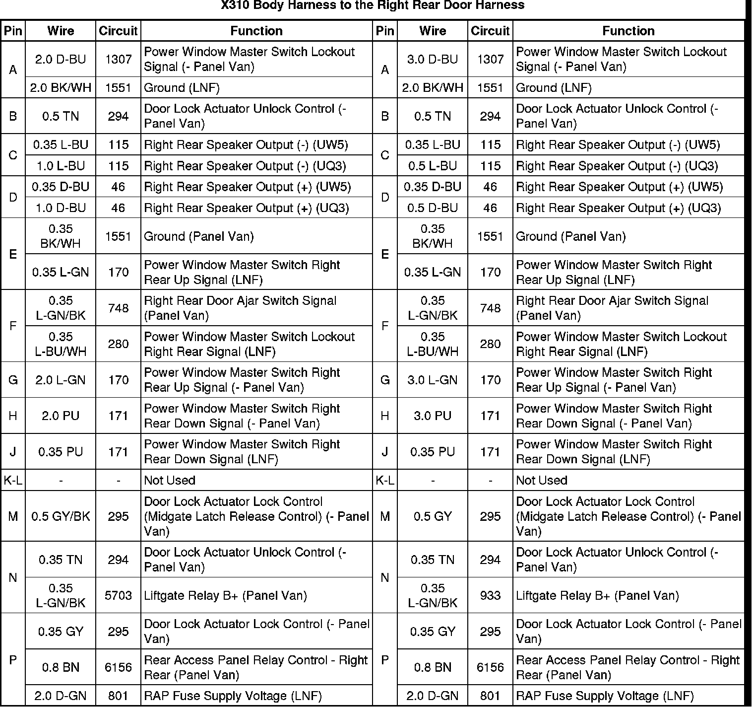 X310 Body Harness to the Right Rear Door Harness