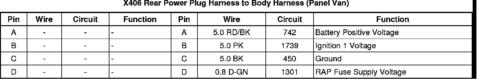 X406 Rear Power Plug Harness to Body Harness (Panel Van)