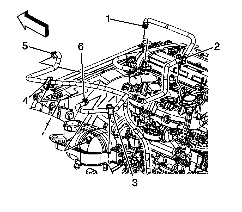 28. Position the charge air bypass valve vacuum hose clamp at the intake manifold.