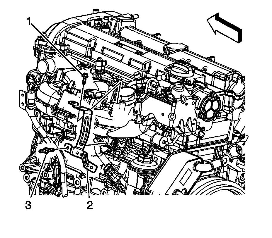 22. Position the surge tank bracket (3) to the intake manifold.