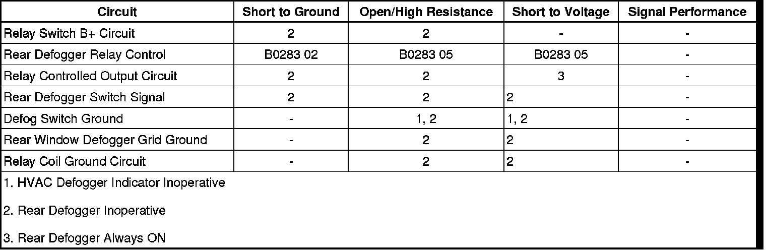 • If the Rear Window Defogger Grid does not activate, test the relay controlled output circuit for an open/high resistance. If the circuit tests normal, test or replace the Rear Window Defogger Grid.