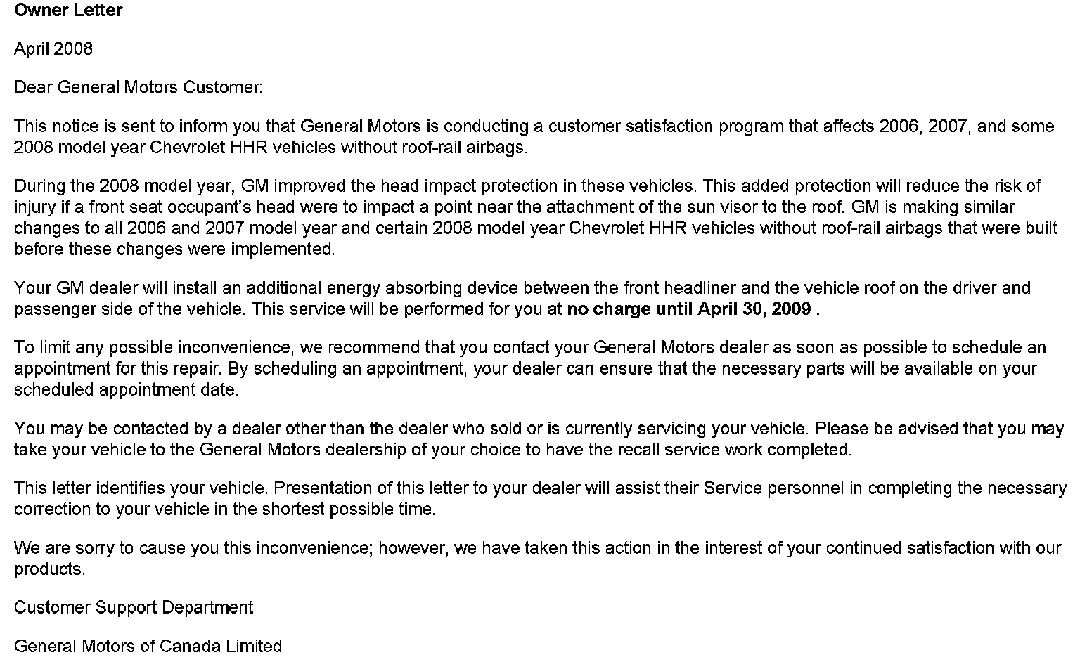 Owner Letter