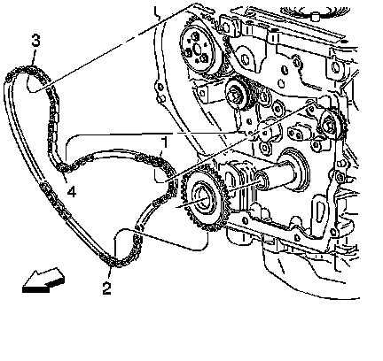 Important: The timing chain tensioner must be removed to unload chain tension before the timing chain is removed. If not removed, the timing chain will become cocked and it will be difficult to remove.