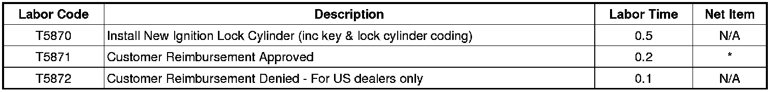 The description for labor code T5870 has been revised to note that the key and lock cylinder coding is included in the labor time. Please discard all copies of bulletin 12089, issued April 2012.