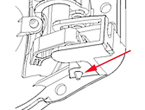 4. Using a pair of wire cutters, or similar tool, cut the retaining barbs off the end of the plastic pin, allowing the pin to be removed. Use care to not damage the black plastic handle housing.