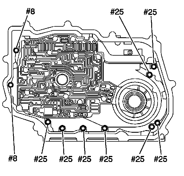 Tighten the two channel plate to case bolts (8) to 14 N.m (10.5 lb ft).