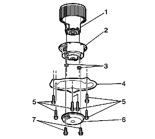 3. Attach the service ring (4) to the motor cup (2) with the screws (5) included in the kit.