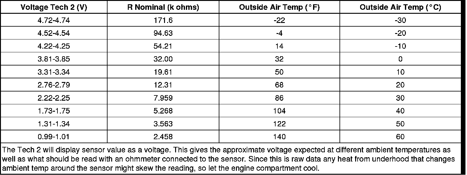 Sensor Resistance Table (Volts to Temp to Resistance)