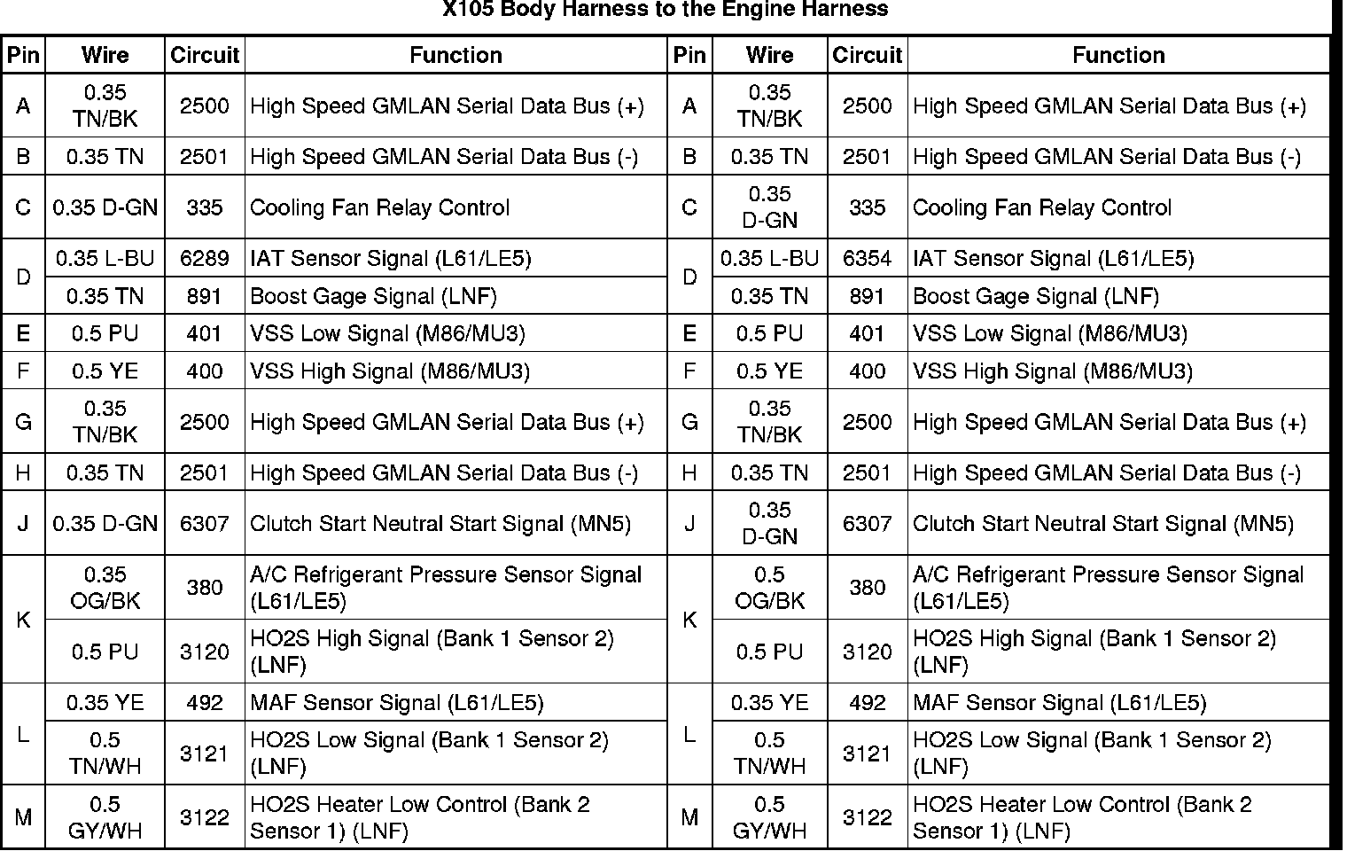 X105 Body Harness to the Engine Harness