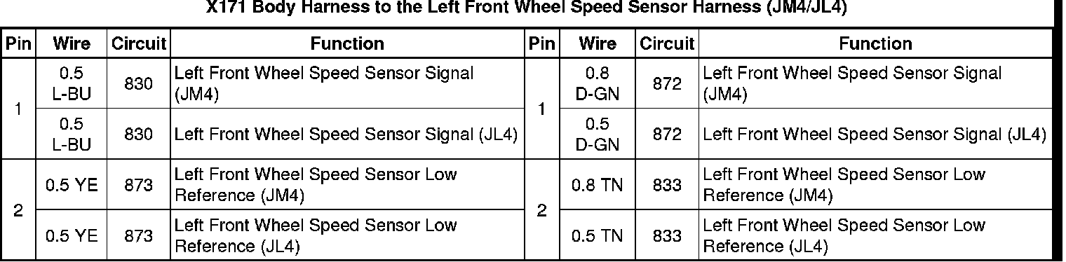 X171 Body Harness to the Left Front Wheel Speed Sensor Harness (JM4/JL4)