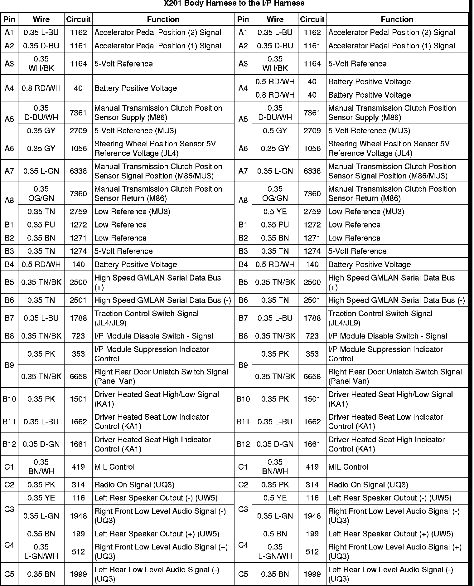 X201 Body Harness to the I/P Harness