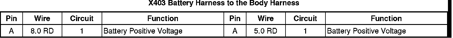 X403 Battery Harness to the Body Harness
