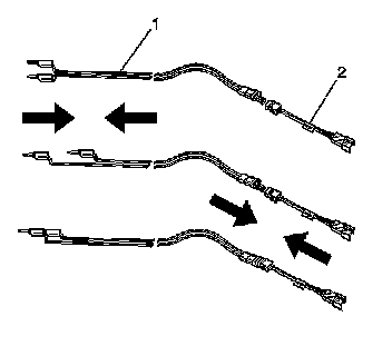 11. Inspect the SIR deployment harness and the appropriate pigtail adapter (2) for damage. Replace as needed.