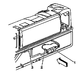 15. Connect the inflator module (1) to the adapter (2) on the SIR deployment harness (3).