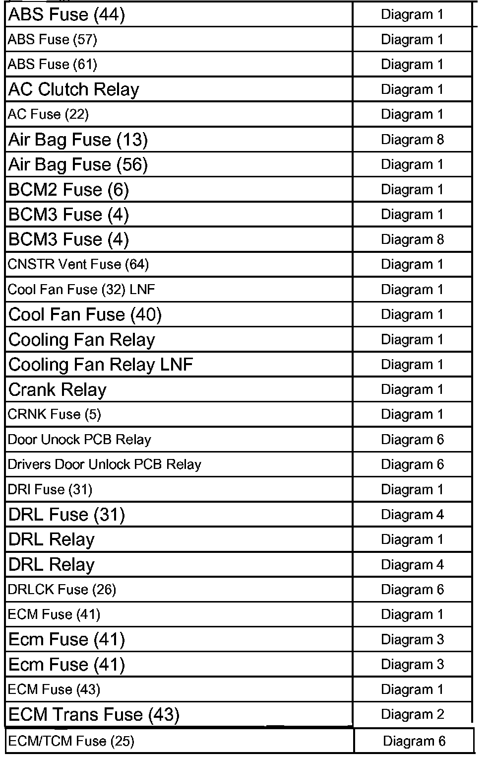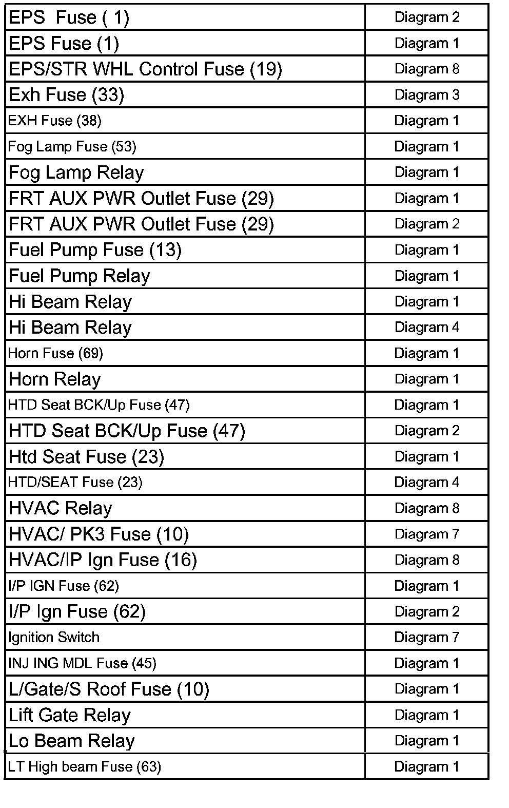 Power Distribution Diagram Index