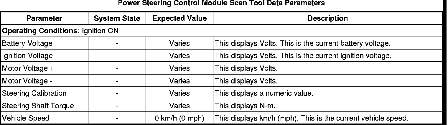 Power Steering Control Module Scan Tool Information (except 2.0L)