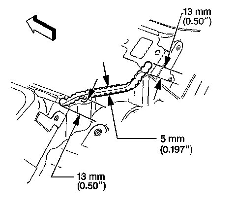 3. Apply a 5 mm (0.197 in) bead of adhesive to the front top of the engine block. Refer to Sealers, Adhesives, and Lubricants (Specifications) for the correct part number.
